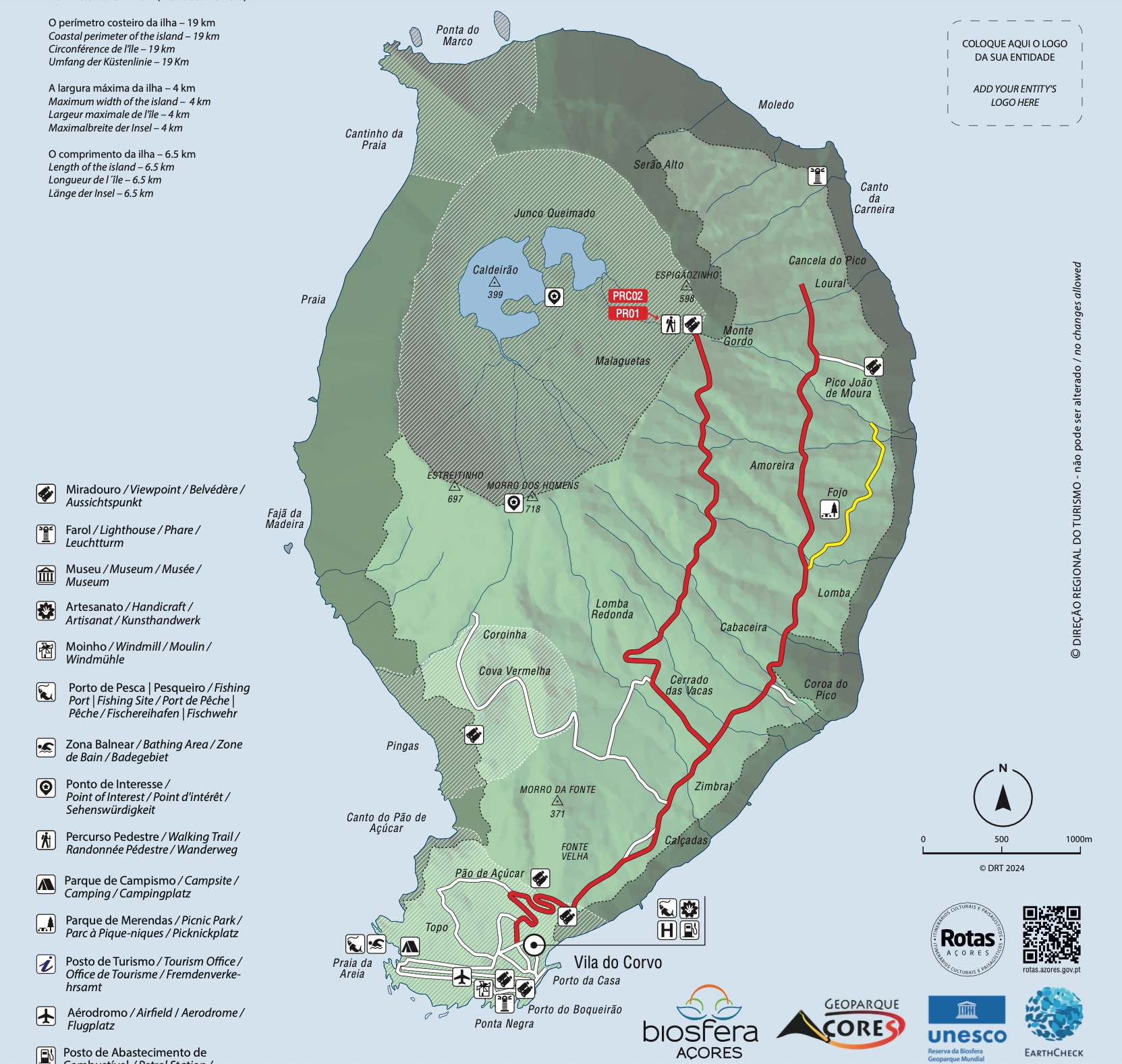 Tra la flora endemica, passerai davanti alle cisterne nella zona conosciuta localmente come Baldio e continuerai il percorso aggirando il cono vulcanico con il cratere aperto verso sud, noto come geosito di Coroínha e sopra (scogliera) di Pingas, da dove è possibile osservare l’isola di Flores nelle giornate limpide.