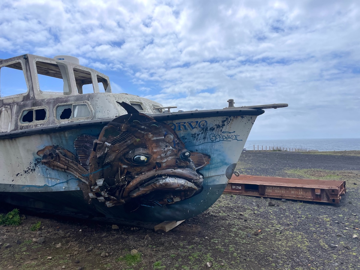 Anche il famoso artista portoghese Bordalo II è passato dall’isola di Corvo e ha creato due opere d’arte: un cagarro (berta maggiore) e un mero, entrambi facilmente visitabili durante la tua passeggiata per il paese.