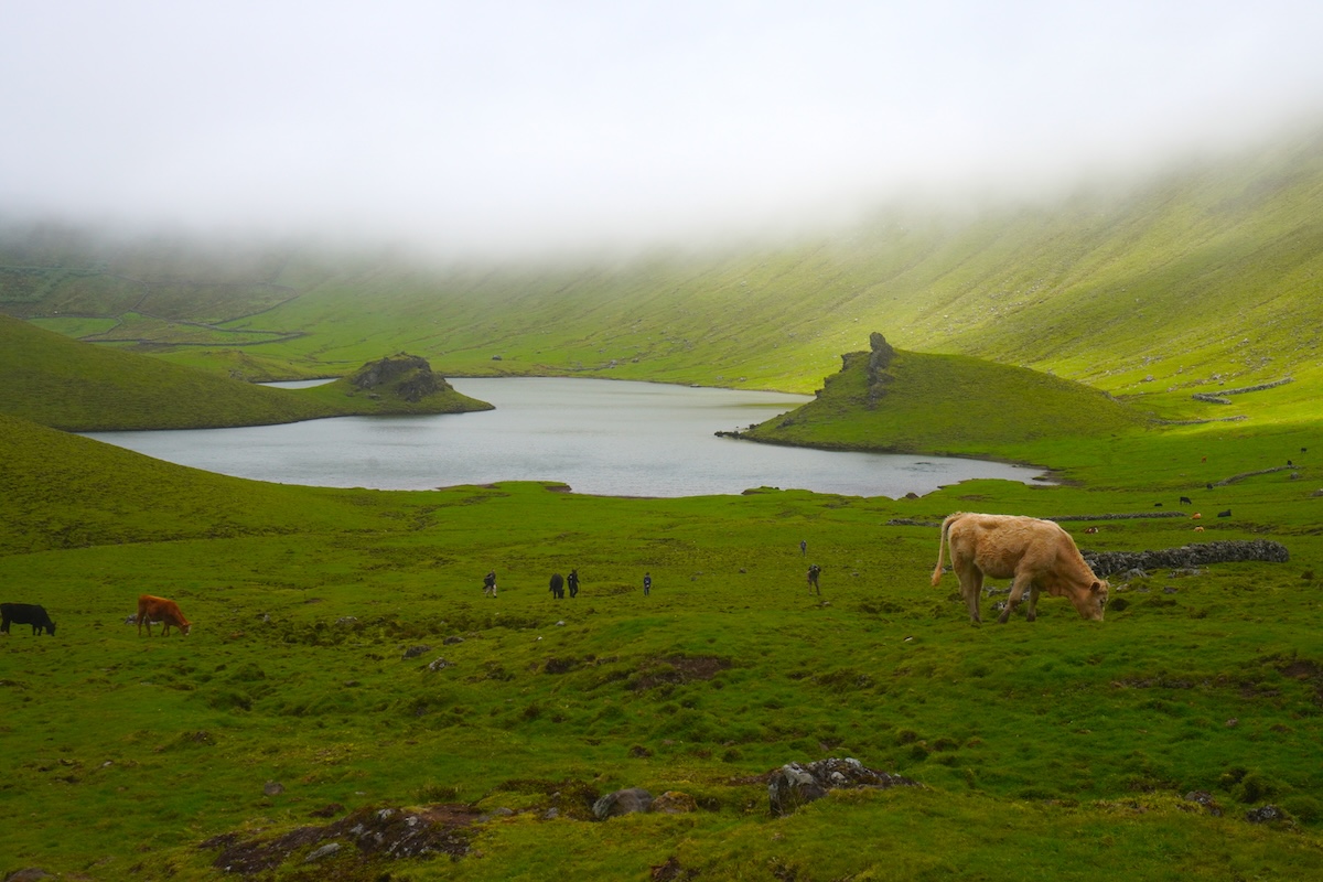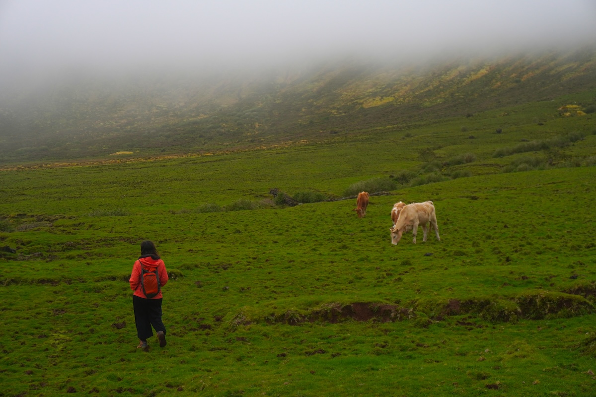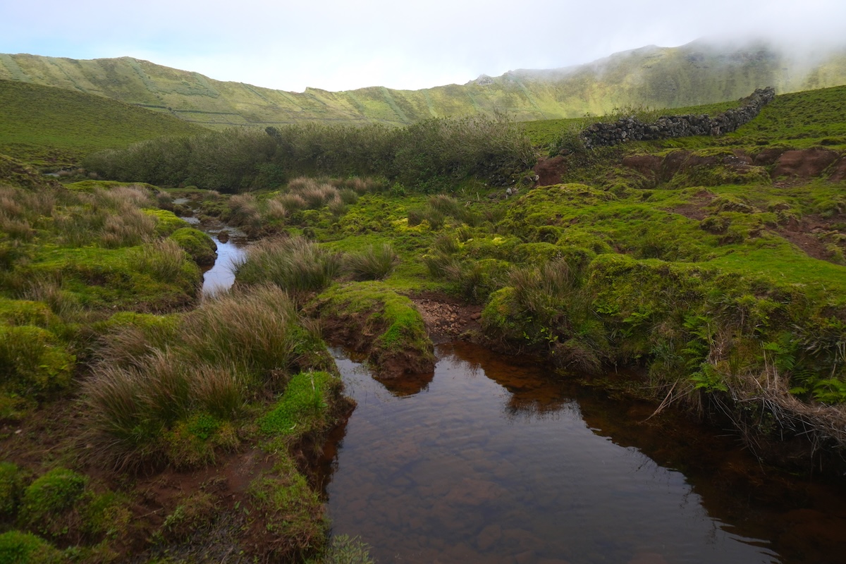 Il Caldeirão de Corvo ha un diametro di circa 3,5 km e una profondità di 300 metri e, se il tempo è favorevole – il tempo è una certezza incerta in un viaggio alle Azzorre – puoi anche fare il sentiero al suo interno e vedere da vicino il sistema di zone umide, alimentato dalla pioggia e dalle acque immagazzinate dalle turfeiras che fanno oscillare il livello della laguna durante l’anno.
